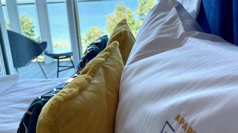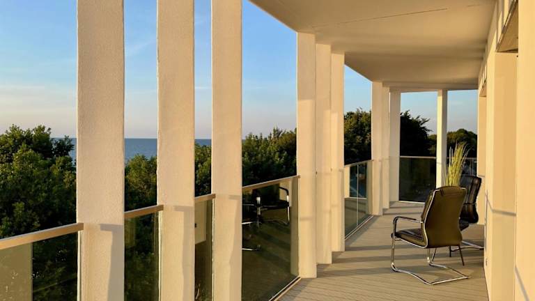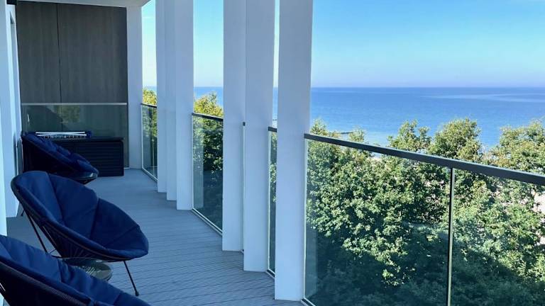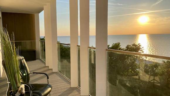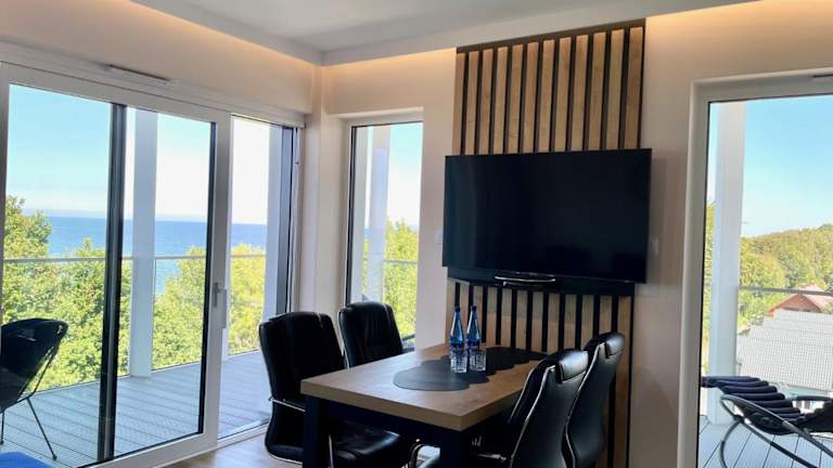 Perlowa Przystan - Apartamenty KOMFORT bietet eine Ferienwohnung mit Meerblick und einer Terrasse. Die Unterkunft ist modern ausgestattet und zudem bietet sie kostenlosen WLAN-Zugang und einen Privatparkplatz für die Gäste.
