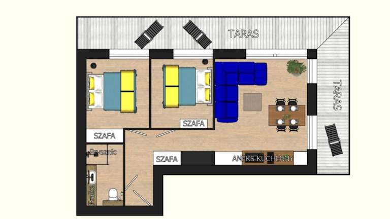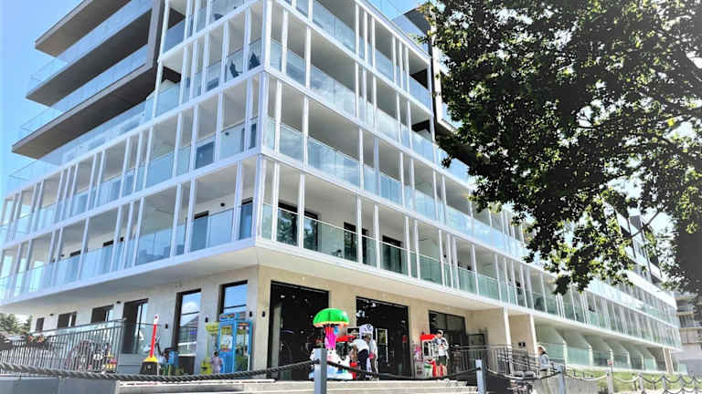 Die Unterkunft befindet sich direkt am Strand in Sianożęty, nur 50 Meter vom Strand Sianozety und 2,7 Kilometer vom Strand Podczele entfernt. Weitere Orte in der Umgebung sind das Rathaus, das 12 Kilometer und der Bahnhof Kolberg, der 13 Kilometer entfernt liegt. Der nächstgelegene Flughafen ist Stettin-Goleniów, welcher sich 116 Kilometer von der Unterkunft befindet.