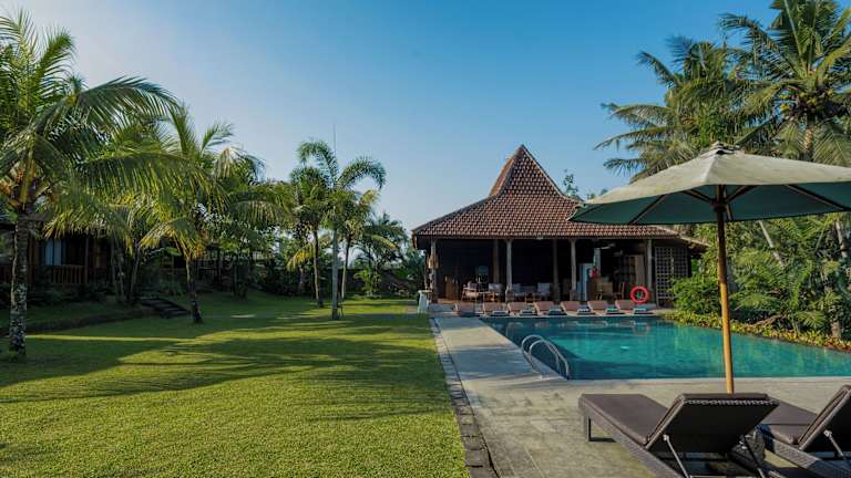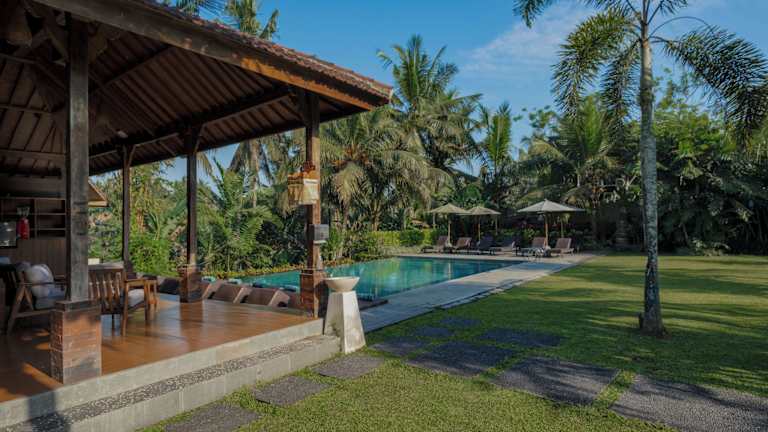 Das Hotel befindet sich in Ubud, nur etwa 300 Meter vom Stadtzentrum entfernt. Die zentrale Lage ermöglicht einfachen Zugang zu den lokalen Geschäften und gastronomischen Einrichtungen.