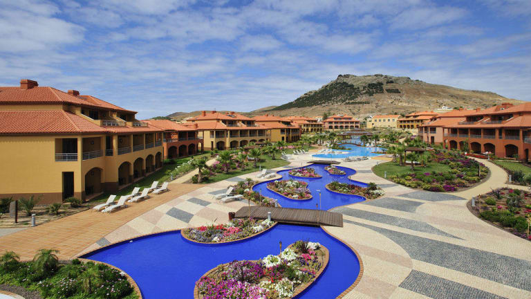 Das Hotel Pestana Porto Santo ist ein 5-Sterne-Strandresort auf der Insel Porto Santo, Madeira. Das Hotel, das Ihnen einen All-Inclusive-Service bietet (Frühstück, Mittag- und Abendessen sowie Snacks und nationale Getränke), wurde kürzlich zum besten All-Inclusive-Resort Europas gekürt. Es befindet sich direkt am besten Strand Portugals, dem Praia do Porto Santo, der durch neun Kilometer feinsten Sand und warmes Wasser besticht. Das Hotel liegt nur eine Minute zu Fuß vom Strand entfernt und verfügt über 2 große Pools, die von üppigen Gärten auf 30.0000 m2 Fläche umgeben sind. Es bietet Ihnen 6 Restaurants und 5 Bars sowie einen SPA-Bereich mit beheiztem Pool, Wasserstrahl‑Bereichen, Sauna, Dampfbad, Hamam und Fitnesscenter. Unsere jüngsten Gäste können sich auf den Sportfeldern sowie im Spielzimmer und Kids Club vergnügen. Die Zimmer sind in den Blautönen des Meeres eingerichtet und mit Flachbildfernseher und Balkon ausgestattet.