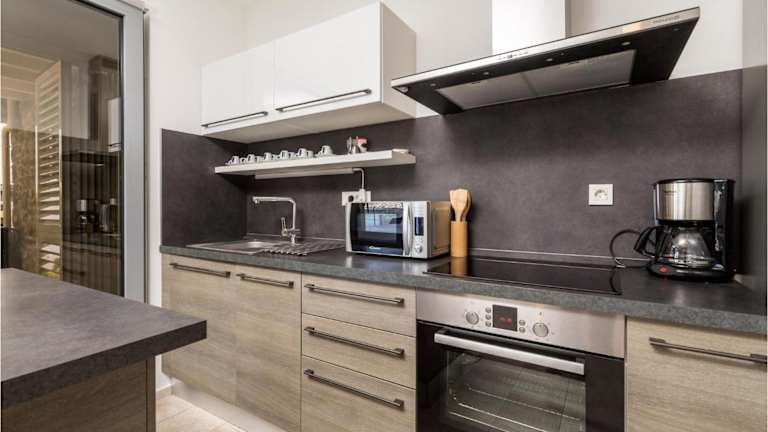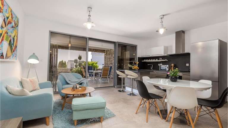 Das Ferienhaus verfügt über Klimaanlage, 3 separate Schlafzimmer, ein voll ausgestattetes Küche mit Kühlschrank und Geschirrspüler sowie 3 Badezimmer. Ein TV ist ebenfalls vorhanden.