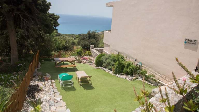 Petasos House - Garden - Sea View ist eine klimatisierte Villa mit einer Terrasse und Meerblick. Sie bietet Platz für 2 Schlafzimmer, ein Wohnzimmer und eine voll ausgestattete Küche, die mit einem Kühlschrank und einer Kaffeemaschine ausgestattet ist. Die Unterkunft wird von einem privaten Gastgeber geführt und es sind keine Junggesellen-/Junggesellinnenabschiede oder ähnliche Feiern gestattet.