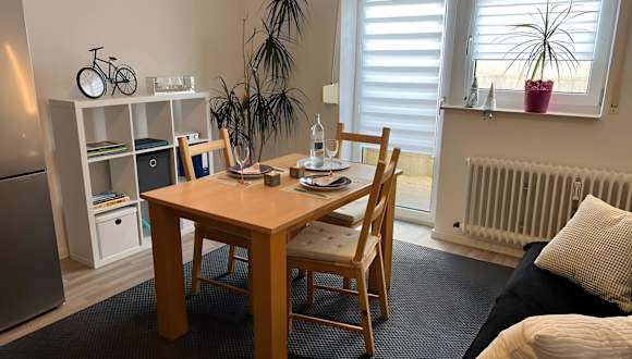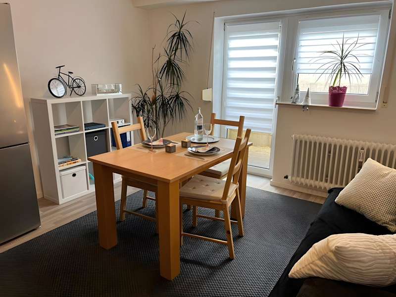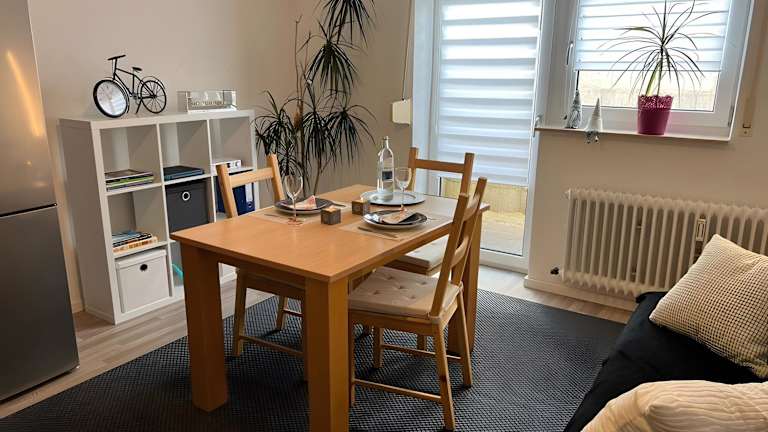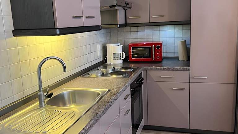 Die Ferienwohnung verfügt über ein Schlafzimmer sowie eine voll ausgestattete Küche mit Kühlschrank und Ofen. Ein Badezimmer mit Dusche inklusive kostenloser Pflegeprodukte und eine Waschmaschine sind ebenfalls vorhanden. Handtücher und Bettwäsche werden bereitgestellt.