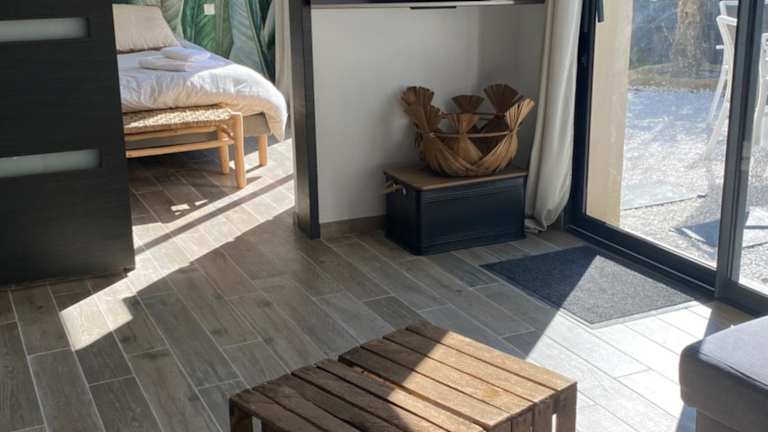 Das Ferienhaus ist klimatisiert und verfügt über ein Schlafzimmer, ein gemütliches Wohnzimmer und eine voll ausgestattete Küche. Die Küche bietet einen Kühlschrank und eine Kaffeemaschine, so dass Sie sich selbst verpflegen können. Das Badezimmer ist mit einer Dusche und einem Whirlpool ausgestattet. Handtücher und Bettwäsche werden gestellt, so dass Sie sich um nichts kümmern müssen.