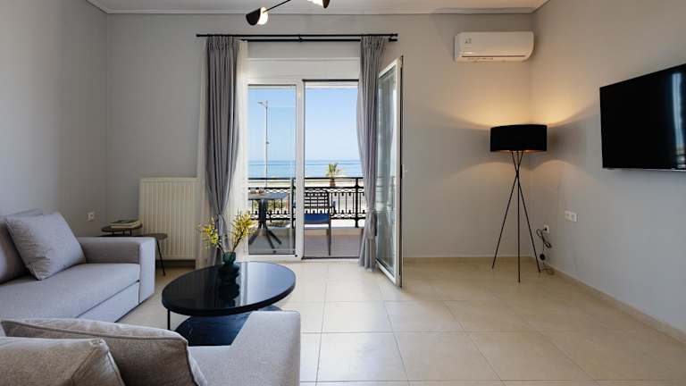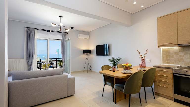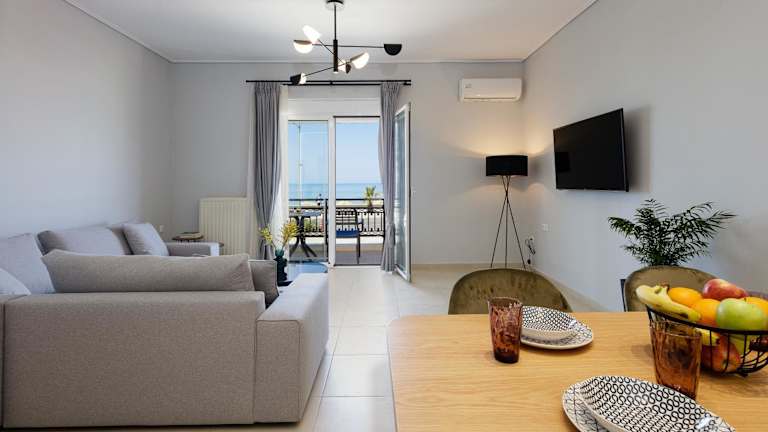 Die Ferienwohnung besteht aus zwei Schlafzimmern und bietet eine Klimaanlage sowie einen Balkon mit Meerblick. Zu den Annehmlichkeiten gehören Internetzugang, ein Flachbild-TV und Gartenmöbel. Das Mindestalter für die Gäste beträgt 0 Jahre.