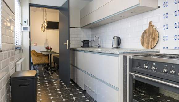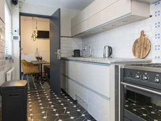 Die Unterkunft bietet eine gut ausgestattete Gemeinschaftsküche, die mit einem Kühlschrank, Geschirrspüler und Ofen ausgestattet ist. Zusätzliche Verpflegungsmöglichkeiten sind nicht angegeben.