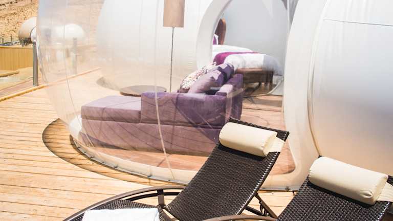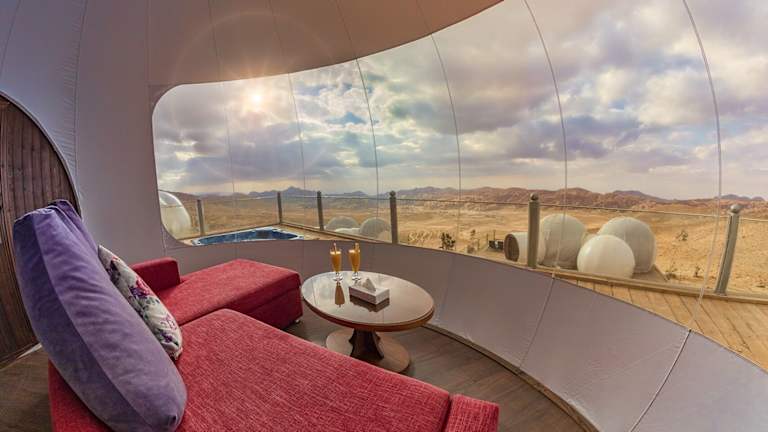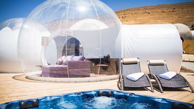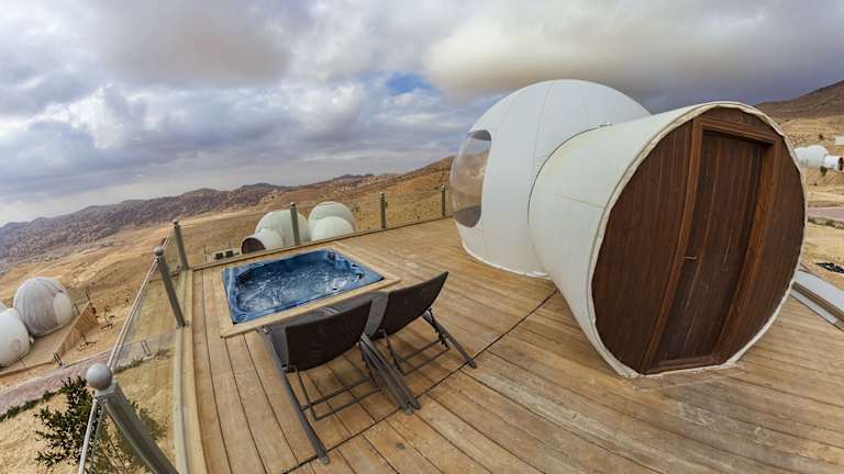 Das Petra Bubble Luxotel in Little Petra Triclinium bietet seinen Gästen ein einzigartiges Erlebnis inmitten der Natur. Die Suiten verfügen über einen eigenen Whirlpool und eine Terrasse, auf der man das schöne Wetter genießen kann. Das freundliche Personal steht Ihnen gerne zur Verfügung und das Hotel bietet Annehmlichkeiten wie WLAN, Parkplätze und Tagungseinrichtungen. Genießen Sie ein nahrhaftes Frühstück im hoteleigenen Restaurant und erkunden Sie die Umgebung mit Hilfe des Tourdesks.