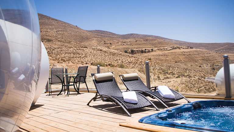 Jede Suite im Petra Bubble Luxotel verfügt über einen eigenen Whirlpool und eine Terrasse, auf der Sie entspannen können. Die Zimmer sind mit Annehmlichkeiten wie einem Kühlschrank, einer Kaffeemaschine und einem Wasserkocher ausgestattet.