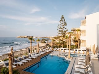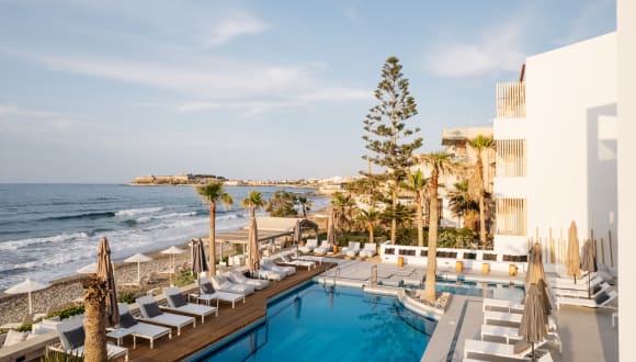 Das Petradi Beach Lounge Hotel in Rethymno ist ein renoviertes Boutique-Hotel direkt am Strand von Koubes. Genießen Sie den atemberaubenden Blick auf das Kretische Meer, die Stadt Rethymno oder den Garten von den elegant eingerichteten Zimmern aus. Das Hotel bietet einen Pool, ein Lounge-Restaurant und kostenfreies WLAN in den öffentlichen Bereichen. Freuen Sie sich auf traditionelle regionale Gerichte im Restaurant und erfrischende Getränke an der Snackbar. Entspannen Sie auf der Sonnenterrasse am Pool oder am eigenen Strandbereich und erkunden Sie die Umgebung mit dem Fahrrad oder dem Auto. Das Stadtzentrum von Rethymno mit seinem malerischen Hafen erreichen Sie nach einem kurzen Spaziergang oder einer kurzen Autofahrt.