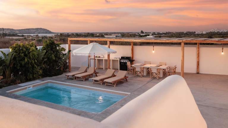 Die Unterkunft Petradia Villas befindet sich in Naxos Chora, lediglich 2,1 km vom Strand Agia Anna entfernt. In der Nähe liegen auch der Strand Agios Prokopios (2,2 km) und der Strand Laguna (2,7 km). Der Flughafen Naxos ist 1 km von der Unterkunft entfernt, ein kostenpflichtiger Flughafentransfer wird angeboten.
