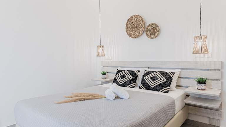 Die Zimmer sind mit Klimaanlage und Heizung ausgestattet und verfügen überwiegend über einen Balkon. Die Standardausstattung umfasst ein Doppelbett, eine Kochnische mit Kühlschrank, Herd und Backofen sowie ein Badezimmer mit Dusche und Badewanne. Ein Fernseher, ein Telefon und kostenloses WLAN sind ebenfalls vorhanden. Nichtraucherzimmer sind verfügbar.