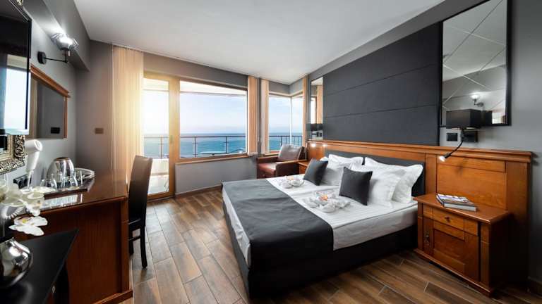 Die Zimmer des Hotels sind teilweise mit einem Balkon ausgestattet, der einen Blick auf das Meer bietet. Einige Zimmer verfügen auch über eine Veranda oder einen Patio. Kostenloses WLAN ist für alle Gäste verfügbar.