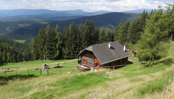 Die Hütte liegt auf ca 1050 m Seehöhe mitten in einem Waldgebiet in Alleinlage. Um die Hütte herum befinden sich unsere Weiden für das Jungvieh. Die Hütte ist eingezäunt und ein Autoabstellplatz ist auch vorhanden.