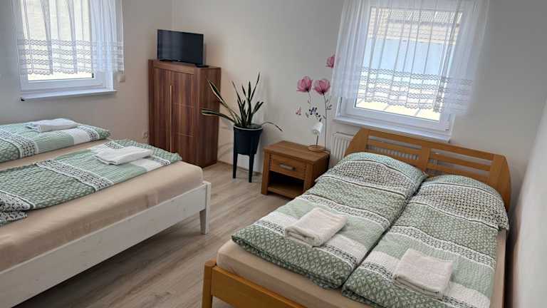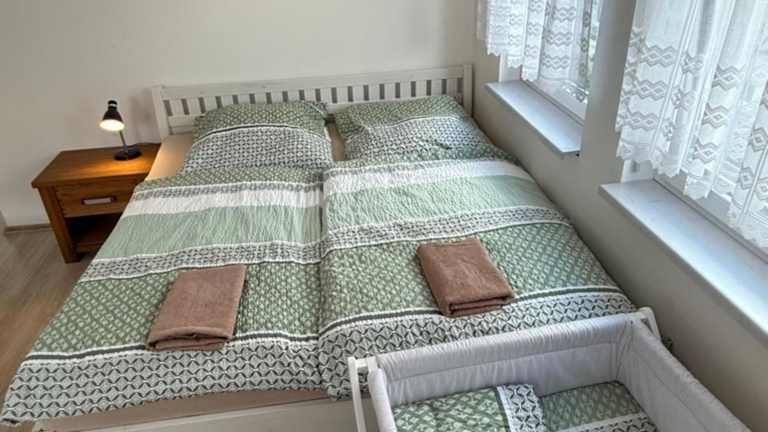 Die Ferienwohnung umfasst 2 Schlafzimmer, ein Wohnzimmer sowie ein Badezimmer mit Dusche und Haartrockner. Zur Ausstattung gehören außerdem Handtücher und Bettwäsche.