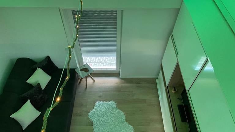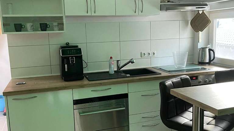 Die Ferienwohnung umfasst ein Schlafzimmer, eine Küche, die mit einem Kühlschrank und einem Geschirrspüler ausgestattet ist, sowie einen Sitzbereich. Ein Flachbild-TV und ein Badezimmer mit Dusche stehen ebenfalls zur Verfügung. Handtücher und Bettwäsche werden bereitgestellt.