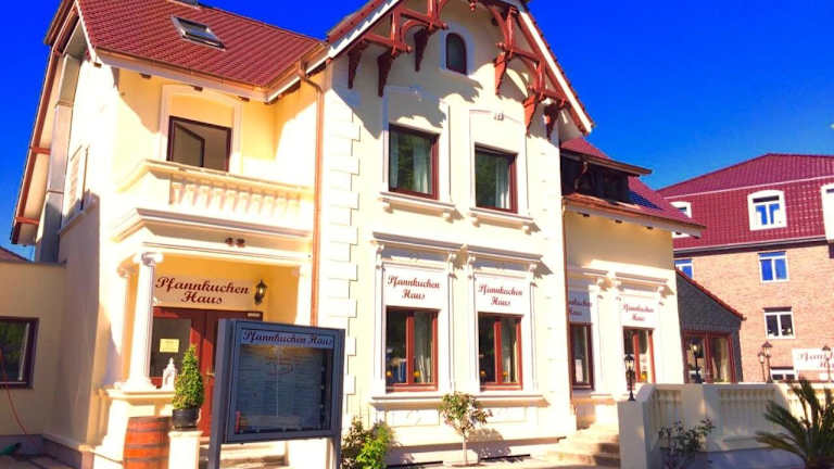 Das Pfannkuchenhaus Fehmarn ist bekannt für seine leckeren Pfannkuchen. Genießen Sie eine große Auswahl an süßen und herzhaften Pfannkuchen, die Ihren Gaumen verwöhnen werden. Im Hotel gibt es auch eine Bar, in der Sie entspannen und einen Drink genießen können.