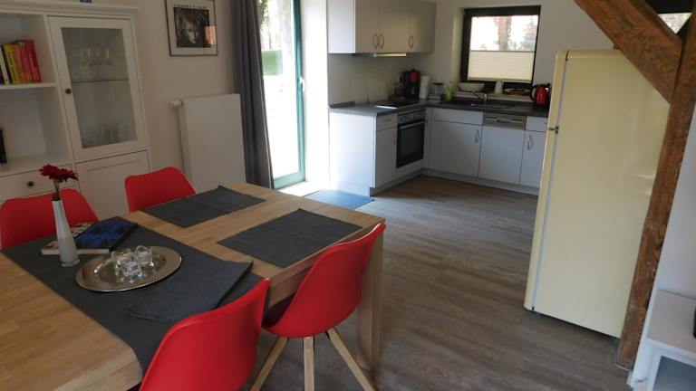 Die Pfarrscheune verfügt über eine gut ausgestattete Küchenzeile, die mit einem Kühlschrank, einem Geschirrspüler, einem Backofen, einer Kaffeemaschine und einem Wasserkocher ausgestattet ist. Hier können Sie bequem Ihre eigenen Mahlzeiten zubereiten. Kostenloses WLAN steht Ihnen in allen Bereichen der Unterkunft zur Verfügung.