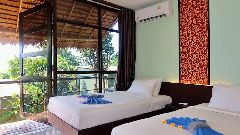 Die Bungalows im Phi Phi Sea Sky Resort sind komfortabel und bieten alles, was Sie für einen angenehmen Aufenthalt benötigen. Jeder Bungalow verfügt über eine Klimaanlage, kostenfreies WLAN und einen eigenen Balkon, auf dem Sie die frische Luft und die Aussicht genießen können. Zur weiteren Ausstattung gehören ein Flachbild-Kabel-TV und ein Kühlschrank. Das private Badezimmer ist mit einer Dusche ausgestattet.