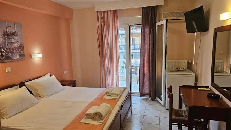Die Zimmer im Hotel Philippos sind hell und geräumig, mit einer angenehmen Ausstattung. Jedes Zimmer ist klimatisiert und verfügt über ein eigenes Bad mit Dusche und Haartrockner. Kostenfreies WLAN und Sat-TV sorgen für Unterhaltung und Komfort. Ein Kühlschrank ist ebenfalls vorhanden.