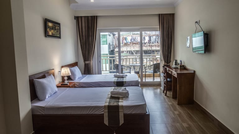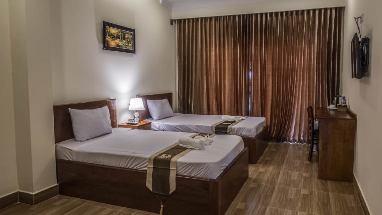 Das Phnom Penh Le Vincent Hotel ist eine ideale Unterkunft für Ihren Aufenthalt im Herzen von Phnom Penh. Mit seiner zentralen Lage in der Nähe des Flussufers und zahlreicher Sehenswürdigkeiten bietet es Ihnen Komfort und Bequemlichkeit. Genießen Sie Ihre Mahlzeiten im hoteleigenen Restaurant und nutzen Sie das kostenfreie WLAN und die Parkplätze. Die klimatisierten Zimmer sind modern eingerichtet und bieten Annehmlichkeiten wie Flachbild-TV und eigenes Badezimmer. Das freundliche Personal an der 24-Stunden-Rezeption steht Ihnen bei der Organisation von Ausflügen und anderen Anliegen gerne zur Verfügung.