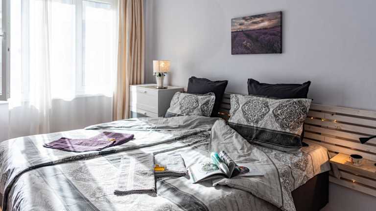Das klimatisierte Apartment verfügt über ein Schlafzimmer, ein Wohnzimmer und eine voll ausgestattete Küche mit Kühlschrank und Kaffeemaschine. Das moderne Badezimmer ist mit einer Dusche und einem Haartrockner ausgestattet. Handtücher und Bettwäsche werden Ihnen zur Verfügung gestellt, damit Sie sich wie zu Hause fühlen können.