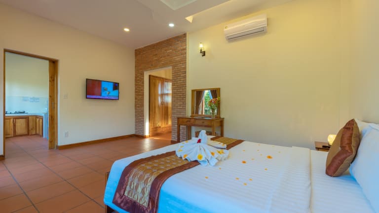 Jedes Zimmer im Phu Quoc Bungalow Yen Thanh ist komfortabel eingerichtet und klimatisiert. Es verfügt über einen gemütlichen Sitzbereich, einen Flachbild-Sat-TV, eine voll ausgestattete Küche, einen Essbereich und ein eigenes Badezimmer mit kostenfreien Pflegeprodukten. Bettwäsche und Handtücher werden gestellt, um den Gästen den maximalen Komfort zu bieten.