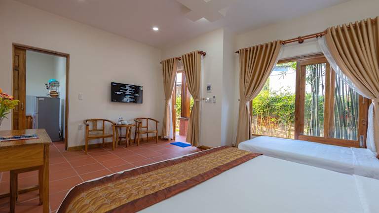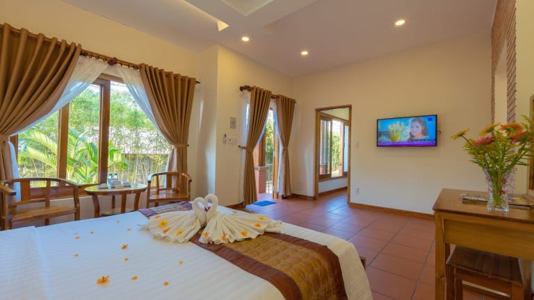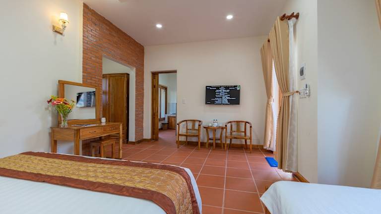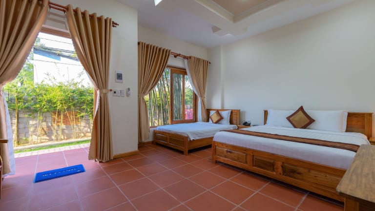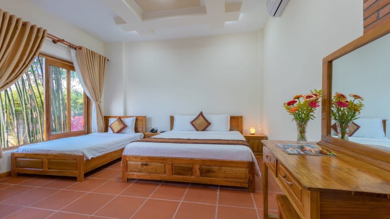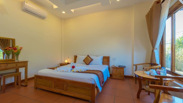 Neben dem Außenpool bietet das Phu Quoc Bungalow Yen Thanh auch eine Sonnenterrasse, auf der Sie sich entspannen und die warme Sonne genießen können. Für zusätzlichen Komfort bietet das Resort einen Zimmerservice, einen Tourenschalter und einen Geldwechsel. Erkunden Sie die Umgebung und besuchen Sie die nahe gelegene Pagode Sung Hung oder das Vinpearl Land Phu Quoc. Der internationale Flughafen Phu Quoc ist nur 12 km entfernt und bietet eine bequeme Anreise.