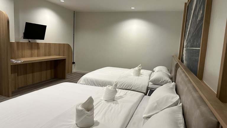 Bequemes Bett in einem kleinen, sauberen Zimmer, ideal für einen Stopover.