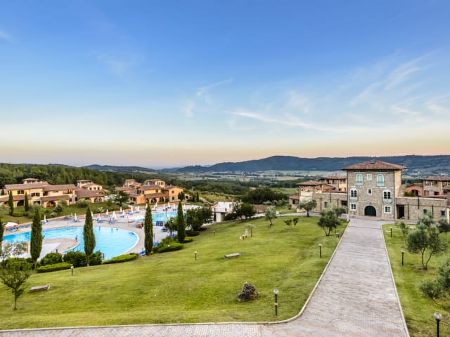 Schwimmbad Große Panoramaschwimmbäder umgeben von mediterranen Gärten. Wellness Fitness- und Wellness-Center, wo Sie sich mit Massagen, Sauna und türkischem Bad verwöhnen lassen können. Pet Friendly Komfort und Freilufträume auf dem Anwesen für Ihre Vierbeiner. Veranstaltungen und Feierlichkeiten Der 'Toskanische Traum', der in einer Umgebung von baumgesäumten Alleen und Blumengärten wahr wird.