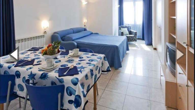 Die Ferienwohnung Piazza principale angolo con il Lungomare verfügt über einen Balkon und ist klimatisiert. Sie bietet Platz für Gäste in einem separaten Schlafzimmer und umfasst eine voll ausgestattete Küche mit Kühlschrank und Ofen sowie ein Badezimmer.