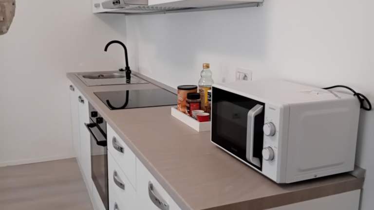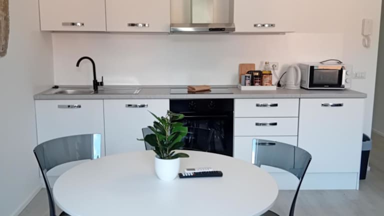 Die Ferienwohnung umfasst 1 Schlafzimmer, ein Wohnzimmer, eine voll ausgestattete Küche mit Kühlschrank und Wasserkocher sowie ein Badezimmer mit Bidet und Dusche. Handtücher und Bettwäsche werden bereitgestellt.