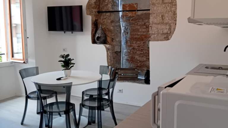 Die Unterkunft befindet sich im Herzen von Como, in unmittelbarer Nähe zu Sehenswürdigkeiten wie Tempio Voltiano, Basilika San Fedele und Dom zu Como. Der nächste Bahnhof, Como San Giovanni, ist 1 km entfernt, während die Umgebung weitere interessante Orte wie Villa Olmo und die Kirche Sant'Abbondio bietet. Der Flughafen Mailand-Malpensa liegt 49 km von der Ferienwohnung entfernt.