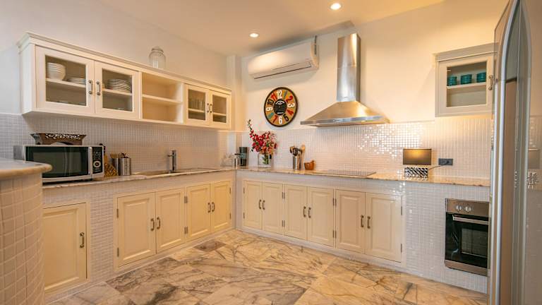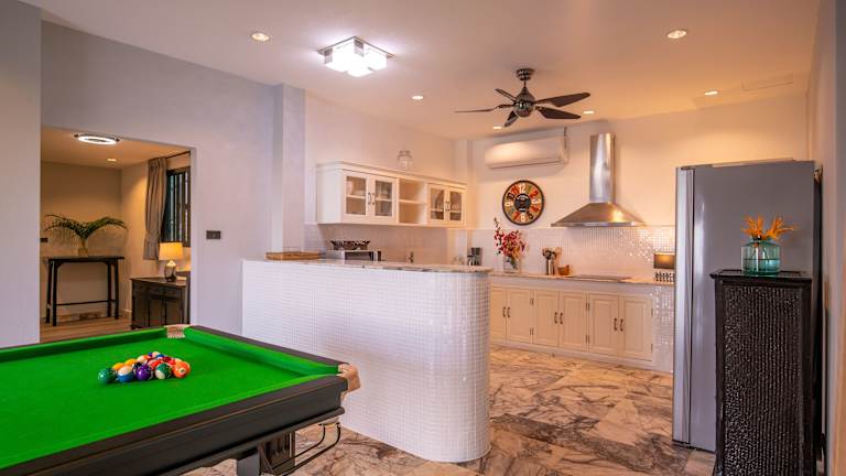 Die Villa verfügt über ein geräumiges und komfortables Interieur. Die Küche ist gut ausgestattet mit einem großen Kühlschrank mit Gefrierfach, einem Ofen, einer Mikrowelle und einem Reiskocher. Das WLAN ist kostenlos und ermöglicht eine gute Verbindung während des Aufenthalts.