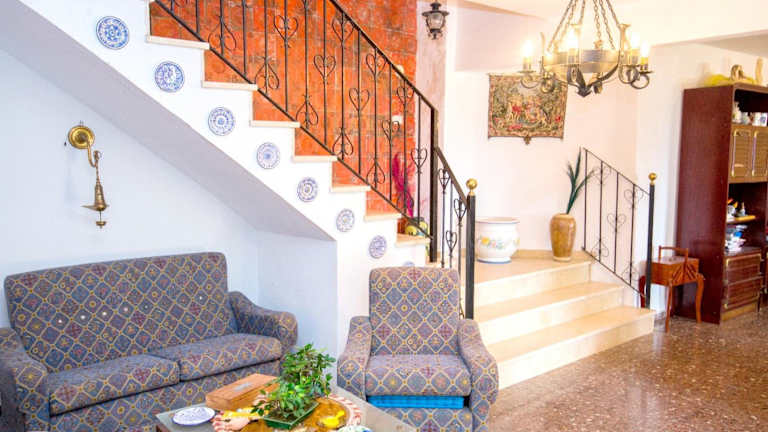 Die Villa verfügt über fünf Schlafzimmer, ein Wohnzimmer und eine gut ausgestattete Küche. Zur Küche gehören Annehmlichkeiten wie ein Kühlschrank und ein Geschirrspüler.