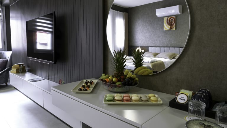 Die klimatisierten Zimmer im FABL HAUS verfügen über einen Balkon, einen Flachbild-TV und ein eigenes Badezimmer mit einer Dusche und kostenfreien Pflegeprodukten. Einige Zimmer sind mit einer voll ausgestatteten Küche ausgestattet, die einen Kühlschrank, einen Geschirrspüler und einen Backofen bietet.
