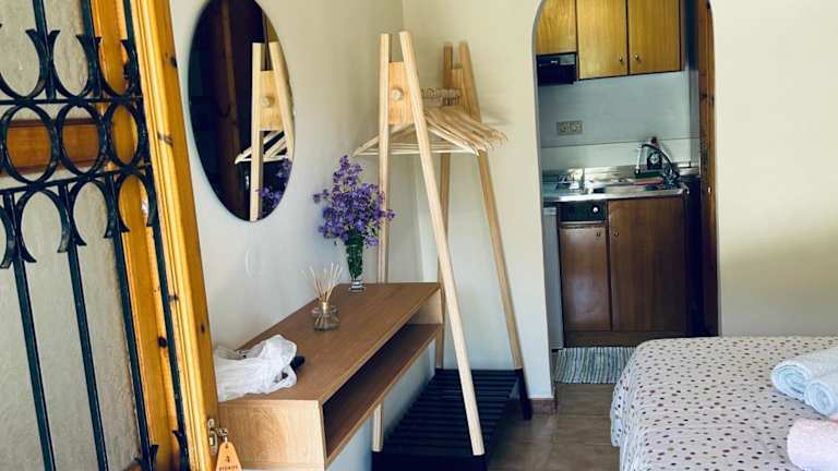 Die Zimmer und Studios im Pieros Alipa sind gemütlich eingerichtet und bieten einen malerischen Blick auf den Garten. Sie verfügen über Holzbalkendecken, geflieste Böden und schmiedeeiserne Betten, die eine charmante Atmosphäre schaffen. Die Unterkünfte sind klimatisiert und bieten einen Flachbild-TV mit Sat- und Kabelkanälen. Die meisten Unterkünfte verfügen auch über eine Küchenzeile mit einem Kühlschrank, Kochplatten und einem Wasserkocher, so dass Sie sich selbst verpflegen können.