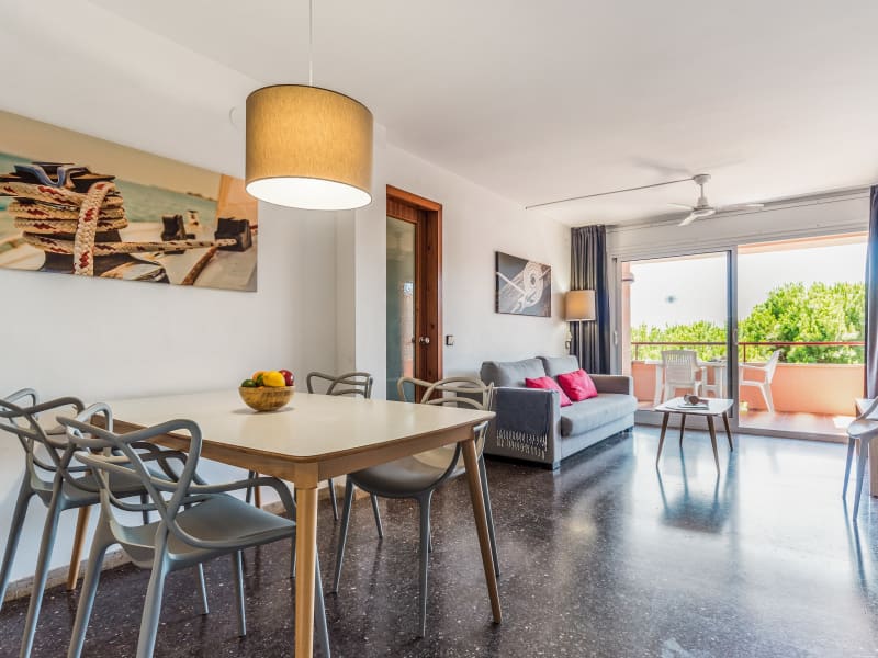 Die Wohnanlage befindet sich an der Costa Dorada in Coma-Ruga, einem kleinen Küstenort, der für seinen riesigen weißen Sandstrand bekannt ist, der mit der "blauen Flagge", der internationalen Umweltauszeichnung für den Schutz der Meeresumwelt, ausgezeichnet wurde. Die Residenz liegt direkt am Strand und besteht aus 10 kleinen 3-stöckigen Gebäuden ohne Aufzug. Alle 71 voll ausgestatteten Wohnungen verfügen über eine Terrasse und die Wohnungen im Erdgeschoss haben einen kleinen Garten. Die Residenz ist von Grünflächen umgeben und verfügt über einen Außenpool. Der Strand befindet sich gegenüber der Residenz und ist zu Fuß erreichbar. Für einen aktiven Urlaub stehen Ihnen in der Nähe zahlreiche Aktivitäten zur Verfügung: ein Reitzentrum in Torredembarra, ein Segelclub am Strand, Tennisplätze, ein Sportzentrum und vieles mehr.