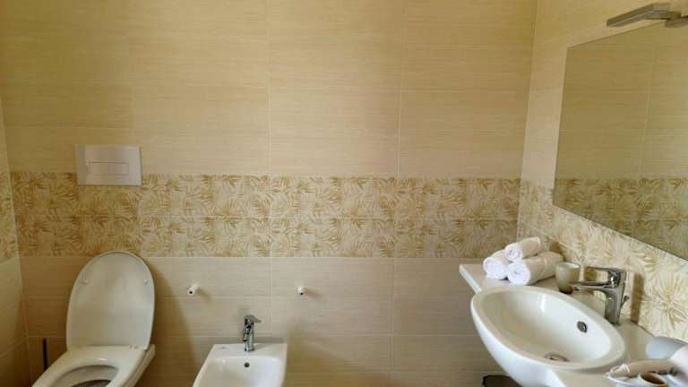 Die Zimmer verfügen über einen Flachbild-TV sowie ein eigenes Badezimmer, das mit kostenlosen Pflegeprodukten, einem Haartrockner und einem Bidet ausgestattet ist.