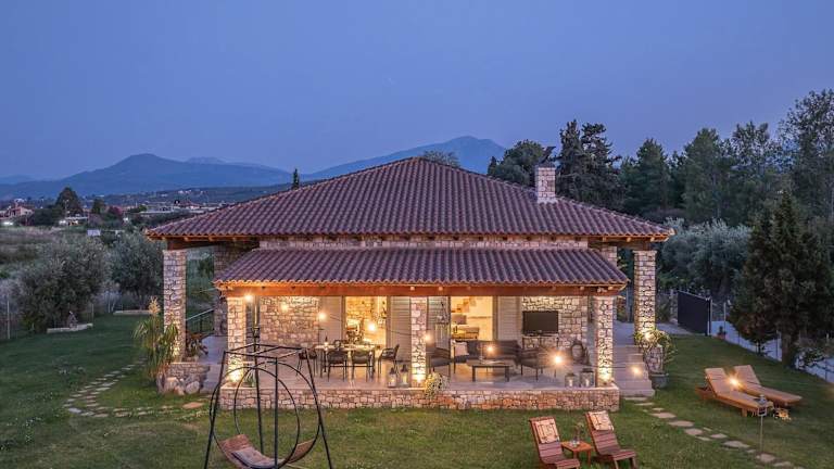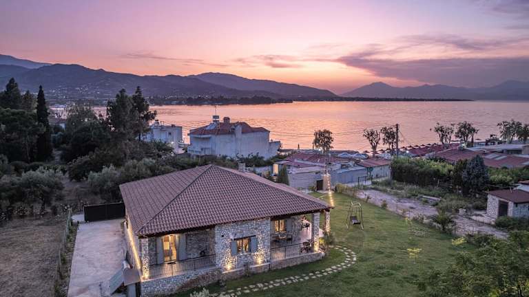 Die Unterkunft befindet sich direkt am Strand und bietet einen Blick auf das Meer. Sie liegt etwa 30 km vom Kultur- und Kongresszentrum der Universität Patras und 37 km vom Psila-Alonia-Platz entfernt. Der Hafen von Patras ist 38 km entfernt, während der Flughafen Araxos in einer Entfernung von 75 km erreicht werden kann.