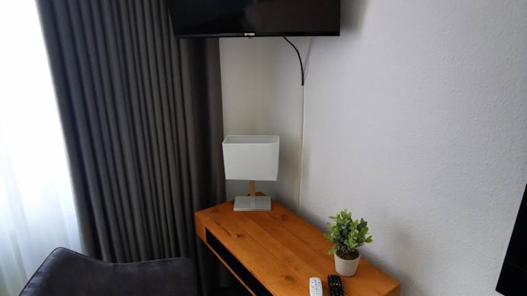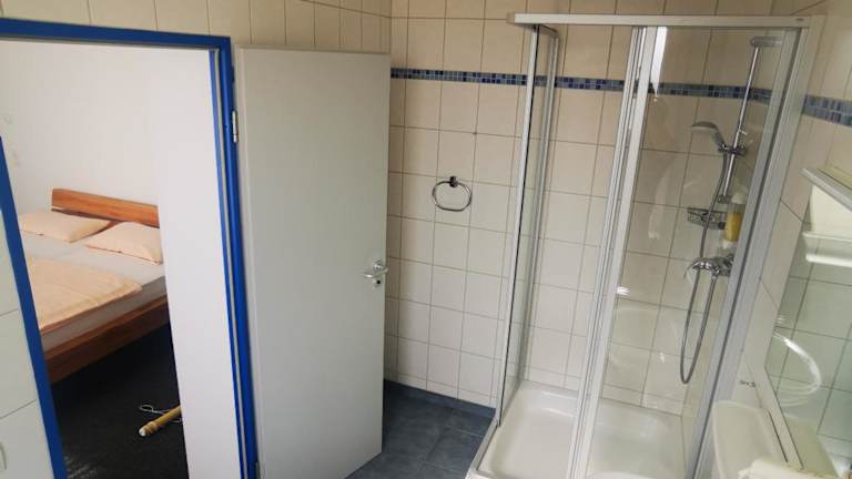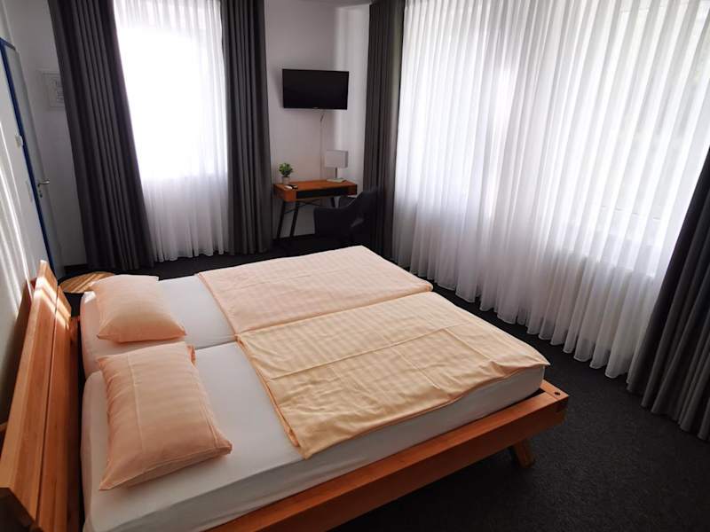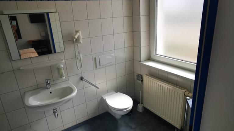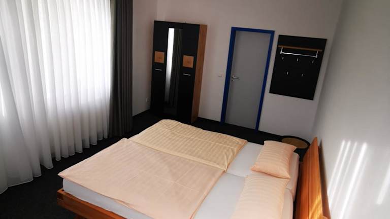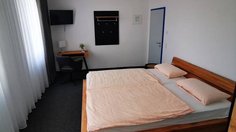 Die Zimmer in der Pilotenunterkunft Fliegerhorst sind mit einem Schreibtisch sowie einem eigenen Badezimmer ausgestattet. Bettwäsche ist ebenfalls vorhanden.