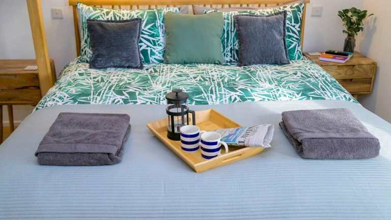 Das Ferienhaus verfügt über zwei Schlafzimmer und zwei Badezimmer. Zur Ausstattung gehören Bettwäsche, Handtücher, ein Flachbild-TV, ein Essbereich sowie eine voll ausgestattete Küche. Eine Terrasse mit Blick auf den Garten ergänzt die Zimmerausstattung.
