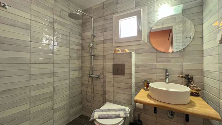 Das Ferienhaus verfügt über 3 Schlafzimmer, die für eine komfortable Übernachtung sorgen. Im Wohnzimmer können Sie sich entspannen und Ihre Lieblingssendungen auf dem Flachbild-TV genießen. Die voll ausgestattete Küche bietet alles, was Sie für die Zubereitung Ihrer Mahlzeiten benötigen, einschließlich Kühlschrank und Backofen. Das Badezimmer ist mit einer Dusche ausgestattet und Handtücher und Bettwäsche werden gestellt. Vom Balkon aus können Sie den atemberaubenden Meerblick genießen.