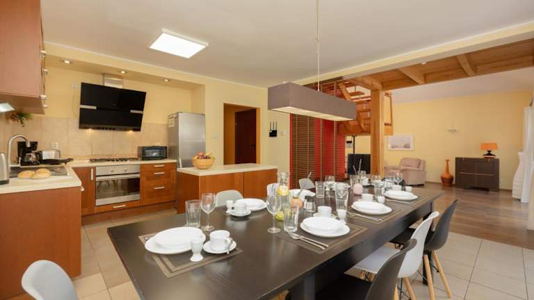 Die Villa verfügt über vier Schlafzimmer und zwei Badezimmer sowie eine voll ausgestattete Küche. Zur Ausstattung gehören ein Essbereich, Bettwäsche, Handtücher und ein Flachbild-TV mit Satellitenkanälen. Eine Terrasse mit Gartenblick ist ebenfalls vorhanden.