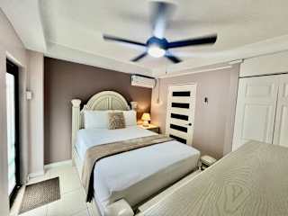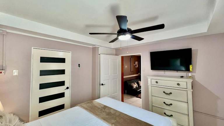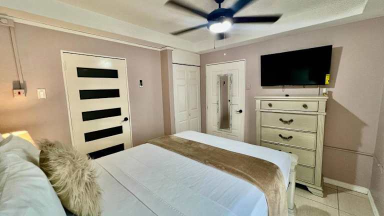 Das Apartment bietet ein gemütliches Schlafzimmer, in dem Sie sich nach einem erlebnisreichen Tag entspannen können. Die klimatisierte Einheit sorgt dafür, dass Sie sich auch bei heißem Wetter wohl fühlen. Das Apartment verfügt über Kabel-TV, so dass Sie Ihre Lieblingssendungen nicht verpassen müssen. Die Küche ist mit einem Kühlschrank und einer Mikrowelle ausgestattet, so dass Sie Ihre eigenen Mahlzeiten zubereiten können. Handtücher und Bettwäsche werden gestellt, um Ihnen einen komfortablen Aufenthalt zu ermöglichen.