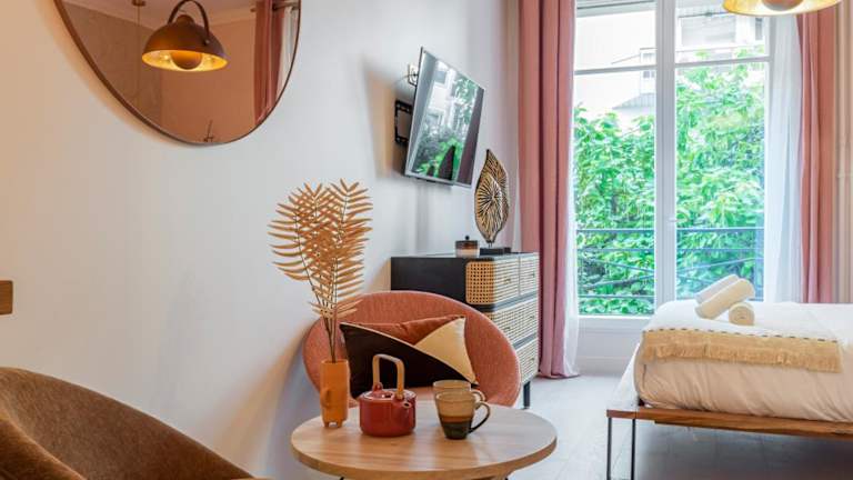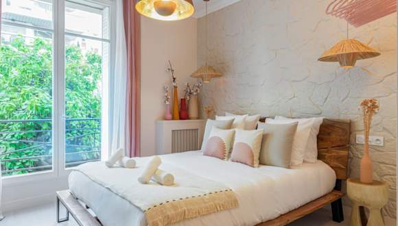 Die Unterkunft befindet sich im Zentrum von Paris, in der Nähe bekannter Sehenswürdigkeiten wie dem Eiffelturm (1,2 km) und dem Triumphbogen (1,1 km). Der Flughafen Paris-Orly ist 17 km entfernt.
