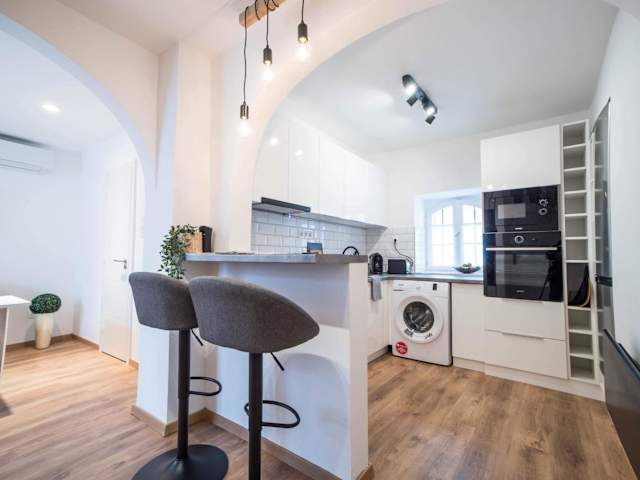 Das klimatisierte Apartment im Pintes 38 verfügt über ein gemütliches Schlafzimmer, ein geräumiges Wohnzimmer und eine voll ausgestattete Küche mit einem Kühlschrank und einer Kaffeemaschine. Das Badezimmer ist mit einer Dusche und kostenlosen Pflegeprodukten ausgestattet. Handtücher und Bettwäsche werden im Apartment gestellt, um den Gästen einen angenehmen Aufenthalt zu ermöglichen.