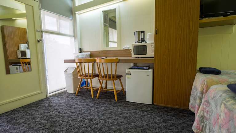 Das Motel bietet komfortable klimatisierte Zimmer, die mit modernen Annehmlichkeiten wie einem Kühlschrank, einer Mikrowelle und einem Wasserkocher ausgestattet sind. Die Zimmer verfügen auch über ein eigenes Bad mit Dusche und Haartrockner. Ein Kleiderschrank sorgt für ausreichend Stauraum und die Bettwäsche ist ebenfalls vorhanden.