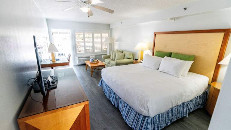 Die Zimmer im Pirate's Cove Resort and Marina sind schlicht mit Holzakzenten dekoriert und verfügen über einen Balkon. Zur Ausstattung gehören Kabel-TV, ein Sitzbereich, ein Schreibtisch sowie Kaffee- und Teezubehör.