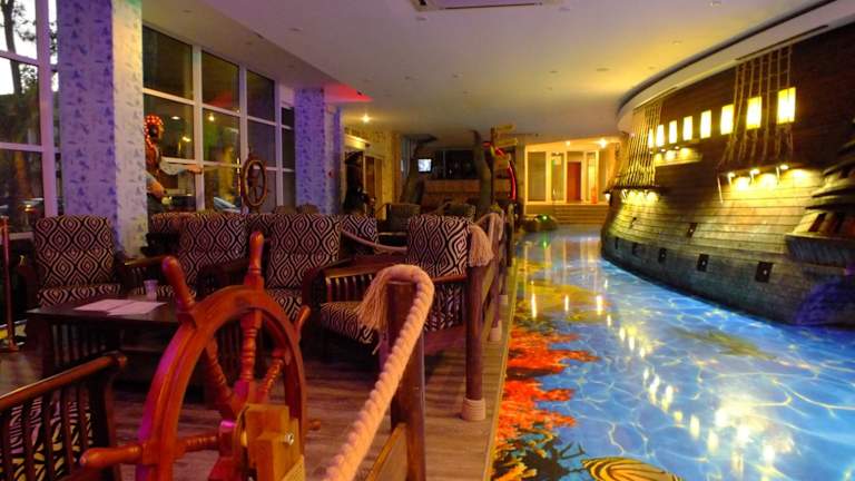 Im Pirates Resort können Sie im Restaurant köstliche Mahlzeiten genießen. Alternativ können Sie auch an der Bar entspannen und ein erfrischendes Getränk zu sich nehmen. Das Hotel bietet auch eine 24-Stunden-Rezeption und einen Souvenirladen.