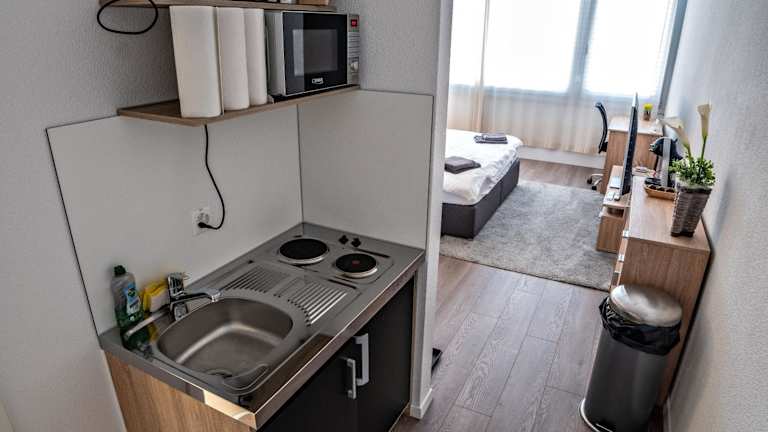 Die Apartments bieten Ihnen einen komfortablen Aufenthalt mit einem Flachbild-TV und einer Küchenzeile, so dass Sie Ihre eigenen Mahlzeiten zubereiten können. Die Zimmer sind modern eingerichtet und bieten alles, was Sie für einen angenehmen Aufenthalt benötigen.